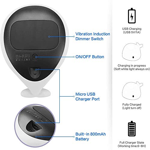 Multifunzione: la luce notturna per bambini è realizzata in silicone flessibile, sicuro e carino come luci notturne, luce notturna per bambini o bambini. La lampada da notte può essere utilizzata anche per giocattoli e decorazioni a led, lampada portatile per viaggi, illuminazione tenda da campeggio, ecc. Le parti in silicone sono rimovibili e lavabili.