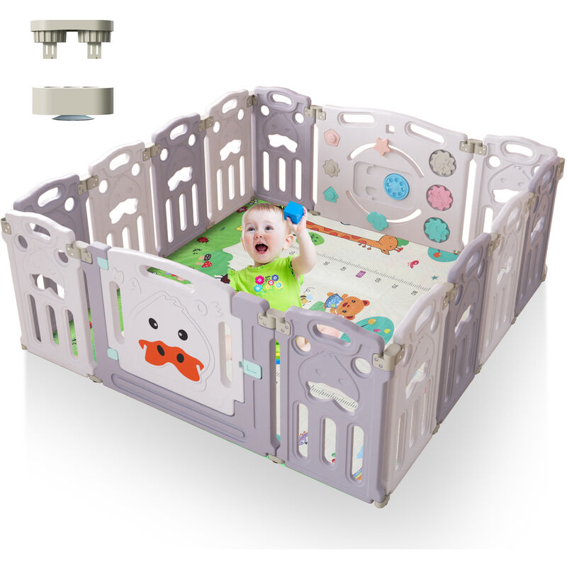 【Flessibile e personalizzabile】Il nostro recinto per bambini è composto da 14 pannelli che si possono riorganizzare a seconda delle necessità o utilizzare come divisori per fornire un ambiente sicuro al bambino. Le manopole tra i pannelli consentono di regolare comodamente le dimensioni e la forma del recinto di gioco. ?【Pannelli di porta e gioco】 I pannelli rinforzati del recinto sono dotati di una chiusura sicura per evitare che il bambino esca dal recinto. Il retro dei pannelli della porta è dotato di una superficie lavagna per dipingere. Il design vivace e colorato del recinto di gioco non solo è accattivante. ma stimola anche l'umore del bambino e arricchisce la sua esperienza di gioco. ?【Stabilità e sicurezza】 Questo recinto per bambini utilizza una finitura superficiale di alta qualità e parti rotonde senza spigoli vivi per ridurre a zero il rischio di lesioni. I piedini in gomma antiscivolo mantengono il tappeto da gioco stabile. mentre i tappetini antiscivolo e antigraffio