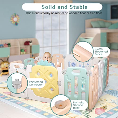 Box per Bambini Pieghevole, Barriera di Sicurezza per Neonati in Plastica Ecologica, Griglia di Protezione con Porta e Giochi, Spazio Giochi per Bambini in Camera Salone Interno Esterno, 12+2 Pannelli