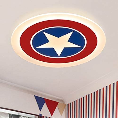 LED bambini Plafoniera Camera dei bambini Dimmerabile con telecomando Lampada da soffitto Creativa Camera da letto Moderna Rotonda Cartoon Captain America Design Metallo Decorazione Illuminazione 52cm