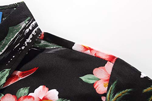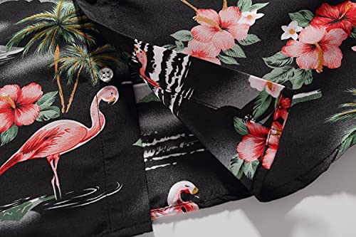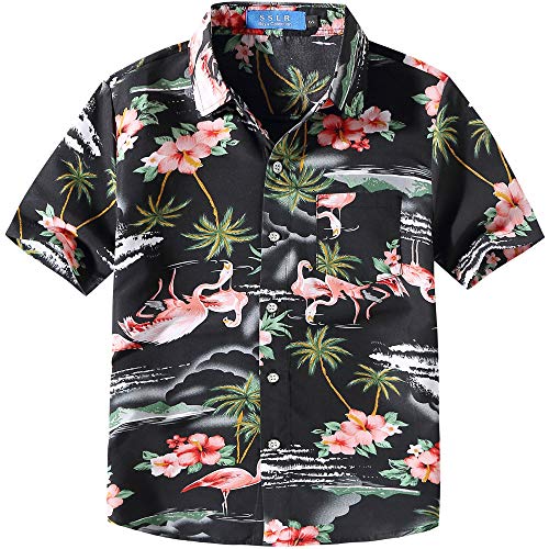 SSLR Bambini e Ragazzi Camicie Hawaiana Manica Corta Casual Button Down Stile Rosa Fenicottero (X-Large (13-16Anni), Nero)