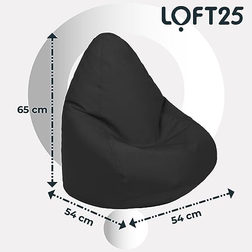 Loft 25 Pouf per bambini | Sedia per bambini resistente all'acqua | Sedia a sacco per interni ed esterni, resistente e confortevole, design ergonomico per il supporto del corpo (pouf, nero)