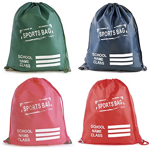 Kids Plain coulisse borsa Sport Gym pompa rucksuck PE con classe nome e la scuola stampa