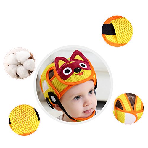 Per bambino casco Head Protector lovely Cat & Dog auto forma testa guardia di sicurezza cuscino con cinghie regolabili e cappuccio di protezione mento Pad imbracature cappello per neonati e bambini a imparare a camminare e Sit Yellow Dog taglia unica