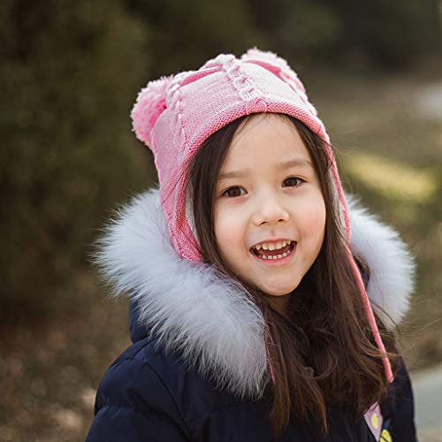 Ami & Li tots Bambino Invernale Infantile Bambino Earflap In Pile Orso Caps Unisex Infantile Maglia Caldo Cotone Crochet Beanie Cappello rosa S