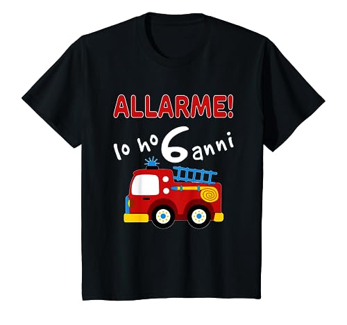 Maglietta per ragazzini e ragazzine con motivo camion dei pompieri per il sesto compleanno. Ottimo regalo di compleanno per il 6 ° compleanno. Regalo divertente di compleanno per tuo figlio da indossare alla festa di compleanno o alla scuola.