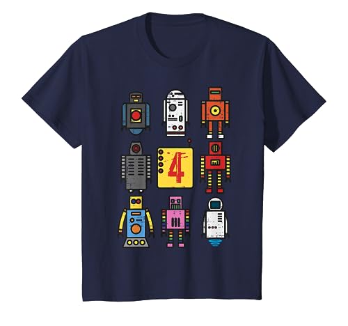 Questo robot dal design retrò è un'ottima idea regalo per un bambino o una ragazza di 4 anni che ama i giocattoli tecnologici e l'informatica. Numero quattro circondato da 8 robotiche vintage.