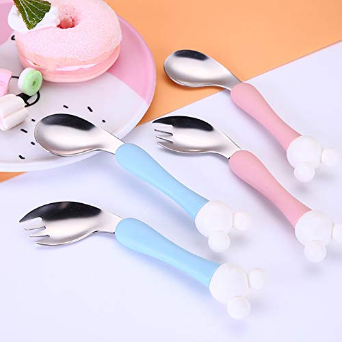 Per sé l'alimentazione: I capi di spork e cucchiaio curva a sinistra è comodo per i bambini mano destra per tenere e bambino può facilmente mangiare con il cucchiaio bambino forchetta. Il bambino posate è molto pratico per l'alimentazione del bambino del sé.