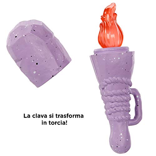 Include il suo cucciolo di dinosauro, Flaire, un pettine delle caverne e una torcia trasformabile.