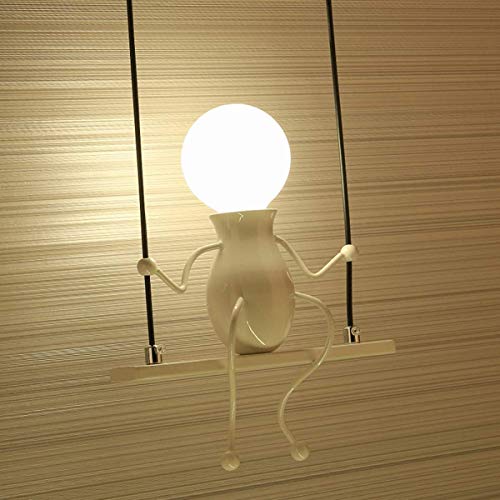 FSTH Bambola di Moda Semplice Swing Bambini Lampada da Parete Soggiorno Moderno Camera da Letto Creativa Applique da Comodino Luce Vacanza/Regalo di Nozze (Bianco)
