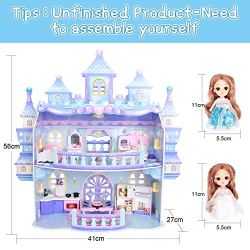 Una villa da sogno super moderna: è formato da 2 piani, 4 stanze con Cucina,Bagno,Camera da letto,Soggiorno e 60+ mobili 3D... e la bambola è inclusa nella scatola! Alto 56cm e largo 41. Profondo 27cm lo rende stabile e sicuro.Finestre che possono aprirsi e chiudersi. Abbastanza grande affinchè possano giocare più bimbe allo stesso tempo. Divertiti