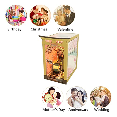 Casa delle bambole DIY Booknook Bookcase Insert Decor Alley, DIY Book Corner Kit, 3D Puzzle di legno con illuminazione LED Book Nook Bookcase Insert Bookends