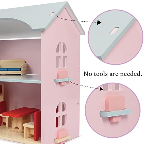 Casa delle bambole in legno, inclusa accessori e mobili, set di 22 pezzi, composto da un salone da cucina Bedrom, regalo di giocattoli per ragazze di 2+ anni