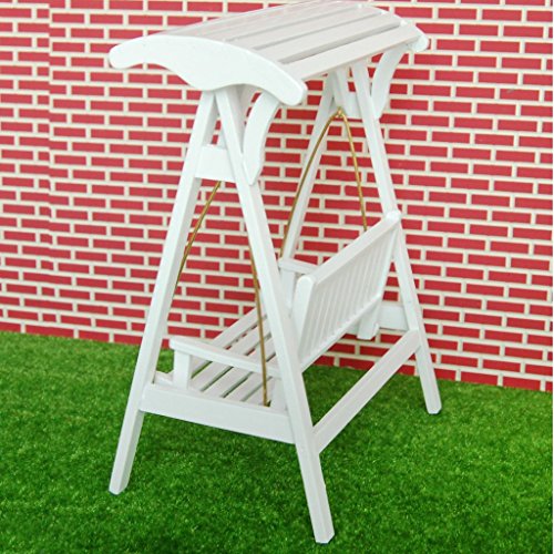1/12 Casa delle bambole Miniatura Mobili da giardino in legno altalena sedia a dondolo bianco