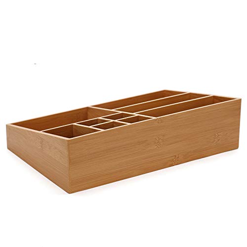 Bamboo Makeup Organizer Box, Multi Compartimenti Cosmetici Desktop Storage Box, Bagno Countertop Desk Caddy, Home Office Accessory Vassoio