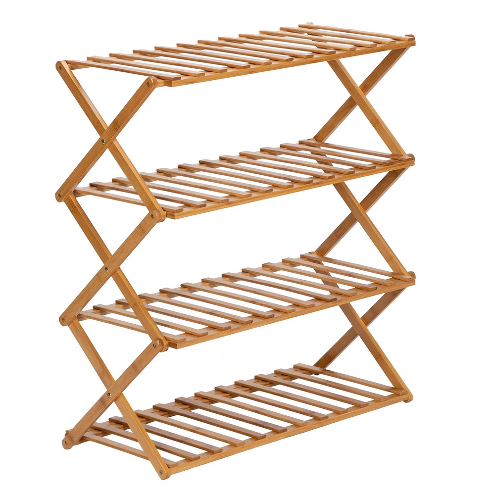 100% Bamboo Plant Frame 4 Layers Balcony Bamboo Frame Folding Flower Frame Office Balcony Living Room Outdoor Garden Decoration