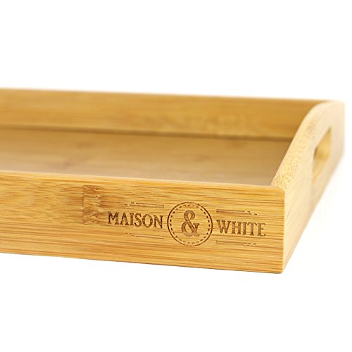 Set of 3 Bamboo Trays | Wooden Serving Tea & Breakfast Platter With Handles M&W