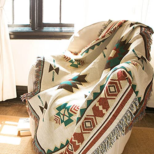BambooClub Telo Arredo Multiuso Divano e Letto, Copriletto Copridivano in Jacquard di Cotone 180x230 cm, Coperta per Letto o Divano Spessa Tribale Etnica