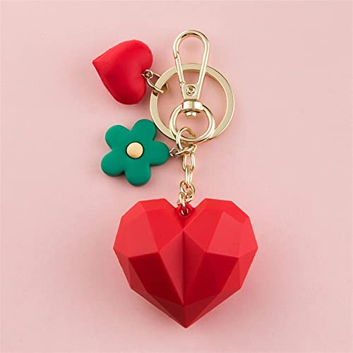 BAMBW Portachiavi con Cuore d'Amore Dolce, Regalo Portachiavi per Auto con Portachiavi a Forma di Cuore in Silicone PVC a Forma di Cartone Animato, per Ciondolo Borsa da Donna(Red)