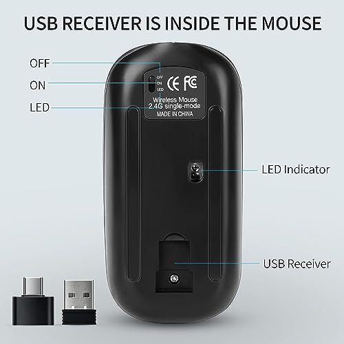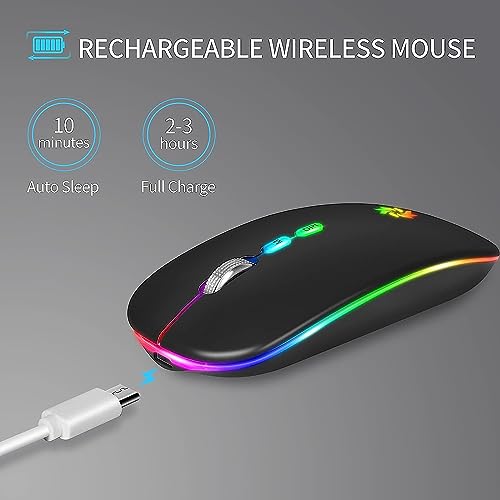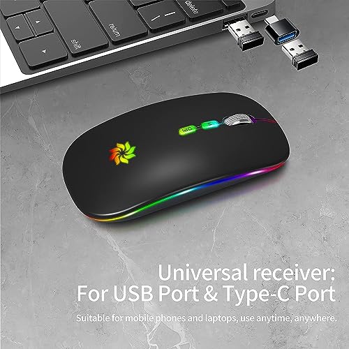 BAMCOO Mouse Wireless LED Mouse Silenzioso Sottile Mouse Wireless Ricaricabile per Computer 2.4G Mouse Wireless per Laptop, MacBook, iPad, Chromebook, con Ricevitore USB e Tipo C(Nero)