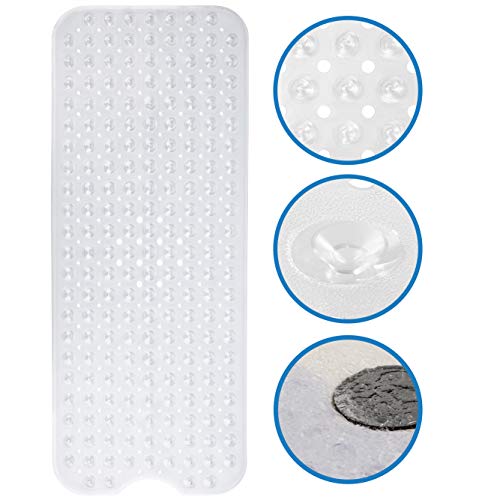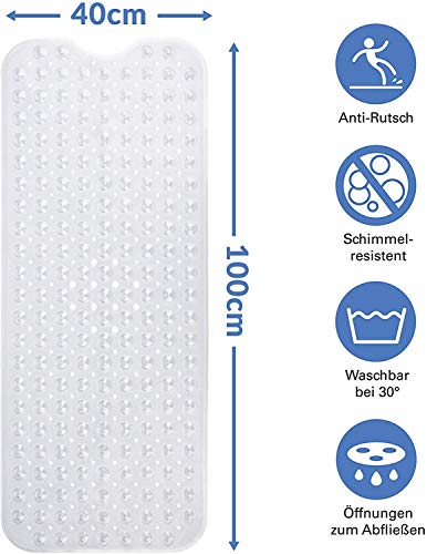 BAMONDO - Tappetino antiscivolo per vasca da bagno, extra lungo, 100 x 40 cm, trasparente, antiscivolo, lungo, Plastica, trasparente, 100 x 40 cm