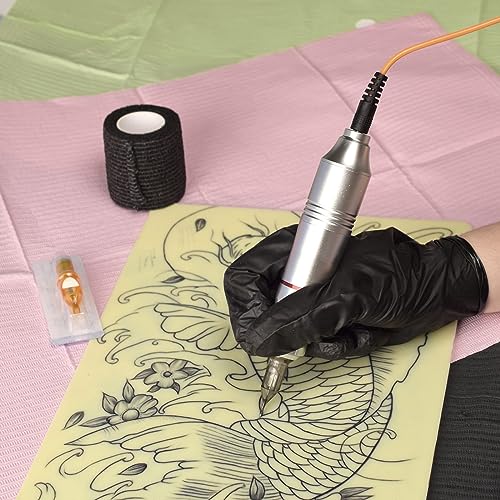 PROFESSIONAL TATTOO SET: All tattoo supplies have been tested before sending. The tattoo cartridge needles are individually packaged, the rotary tattoo pen with the DC interface runs smoothly and is almost silent. Suggest using 6-8V to run this tattoo pen, which will be more efficient.