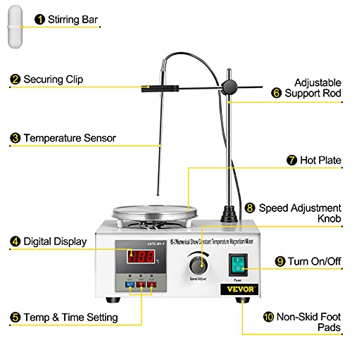 Molteplici applicazioni: questo agitatore magnetico è utilizzato principalmente per mescolare o mescolare campioni liquidi. Agitatore magnetico è attivamente utilizzato in molti settori, ampiamente utilizzato per la ricerca scientifica, studi di laboratorio, esperimenti scolastici e ricerca industriale.