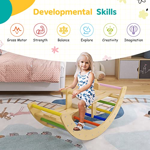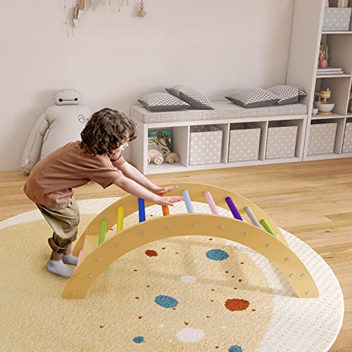 BanaSuper Rocker Waldorf Arco a Dondolo in Legno per i Più Piccoli Scala di Arrampicata Arco Giocattoli da Palestra Montessori per Bambini (Arcobaleno)