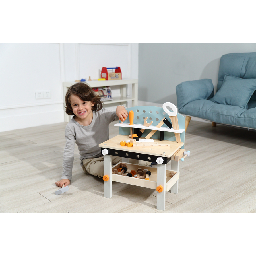Dettagli del prodotto: Età: da 3 anni Con questo banco da lavoro in legno, le abilità artigianali possono essere messe alla prova su una piccola area di gioco I piccoli artigiani saranno entusiasti di questo banco da lavoro in legno, che assomiglia a quello vero ed è perfettamente attrezzato. La motricità fine viene allenata girando, segando e avvitando Include 21 accessori, tra cui 6 viti, 6 dadi, 3 strisce perforate e 4 utensili. L'ampio vano portaoggetti offre lo spazio necessario per riporre gli accessori Dimensioni e peso: Dimensioni (lunghezza x larghezza x altezza): 45 x 27 x 49 cm Peso: 2,5 kg Materiale e cura: Materiale: Legno Incluso nella fornitura: 1 x banco da lavoro piccolo Accessori da 21 pezzi composti da 6 viti, 6 dadi, 3 strisce forate e 4 utensili Avvertenze e istruzioni di sicurezza: Attenzione: non adatto a bambini di età inferiore ai 3 anni, in quanto le piccole parti possono essere ingerite.
