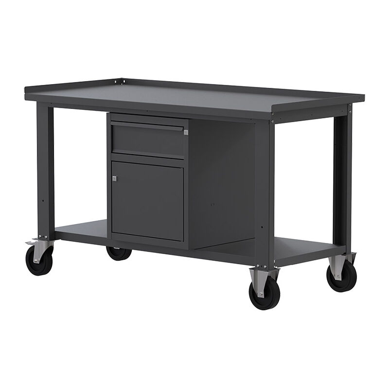 SOGI è lieta di presentarvi la nuova linea di banchi di lavoro INDUSTRIA 2.0: interamente MADE IN ITALY e dal design al passo con i tempi, si tratta di una vasta gamma di prodotti che possono essere inseriti nei più svariati ambienti, da un'officina a un laboratorio, da un garage ad una falegnameria. Il banco da lavoro SOGI X3N_103AR vanta una struttura particolarmente robusta, composta da scatolari metallici di diverse sezioni: ha quattro gambe provviste di altrettante ruote in gomma super elastica anti traccia, un telaio perimetrale rinforzato locato sotto il piano di lavoro ed è munito di una cassettiera (codice prodotto: SOGI X3N_A-03). Quest'ultima è costituita di 1 cassetto ad estrazione totale e di 1 vano con anta e pianetto interno rimovibile . Le ruote, 2 fisse e 2 pivotanti con freno, hanno un diametro di ben Ø 150 mm . Il piano di lavoro, realizzato in lamiera spessa ben 3 mm, rappresenta la superficie di appoggio ideale in tutti quei lavori che richiedono elevata