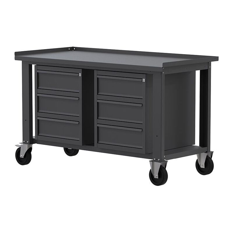SOGI è lieta di presentarvi la nuova linea di banchi di lavoro INDUSTRIA 2.0: interamente MADE IN ITALY e dal design al passo con i tempi, si tratta di una vasta gamma di prodotti che possono essere inseriti nei più svariati ambienti, da un'officina a un laboratorio, da un garage ad una falegnameria. Il banco da lavoro SOGI X3N_108AR vanta una struttura particolarmente robusta, composta da scatolari metallici di diverse sezioni: ha quattro gambe provviste di altrettante ruote in gomma super elastica anti traccia, un telaio perimetrale rinforzato locato sotto il piano di lavoro ed è munito di due cassettiere a 3 cassetti ciascuna (codice singolo prodotto: SOGI X3N_A-02). Le ruote, 2 fisse e 2 pivotanti con freno, hanno un diametro di ben Ø 150 mm . Il piano di lavoro, realizzato in lamiera spessa ben 3 mm, rappresenta la superficie di appoggio ideale in tutti quei lavori che richiedono elevata resistenza a corrosione, ristrette condizioni igieniche, ottima resistenza al calore