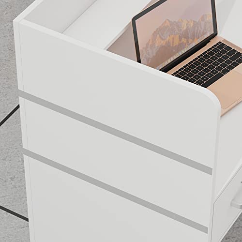 Banco reception, banco reception ufficio bancone, reception tavolo bancone, bancone per ufficio con 3 cassetti, disponibile, schermo privacy, bianco, MDF, maniglia in metallo, 110 x 120 x 48 cm