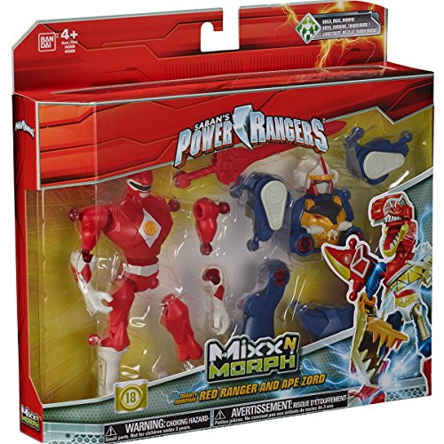 Bandai 43026 - Confezione Duo Pack Power Rangers Mixx'N'Morph, Ranger Rosso Mighty Morphin + Ape Zord, 16 cm