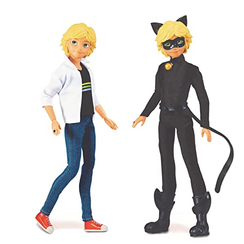 Bandai - Miraculous Ladybug - Bambola con i suoi due abiti - Ladybug e Marinette & Miraculous Ladybug - Bambola - Chat Noir e Adrien - Bambola articolata da 26 cm