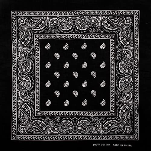 Bandana Nera (BA-12) Paisley Multifunzione Classica di Colori Diversi Foulard Scialle Collo Rocker Biker Motociclista Motorcycle Pirata Accessorio Hip Hop Cappellino Cowboy Bracciale