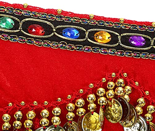 Bandana da danza del ventre donna danza orientale sciarpa gonna cintura fianchi con 271 monete paillettes, Zp142-rosso, Taglia unica