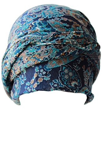 Bandana da donna facile da annodare per nascondere la perdita di capelli causata dalla chemioterapia 202 Navy Cyan Micro Floral Taglia unica
