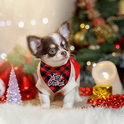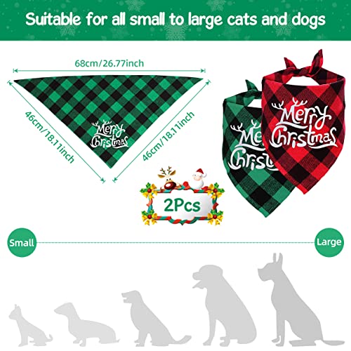 Bandane per Cani di Natale, 2Pcs Sciarpa per Animali Domestici Completi Plaid Triangolo di Merry Christmas Bavaglini per Cani Fazzoletto, Animali Costumi Domestici per Taglia Piccola Media Cani Gatti
