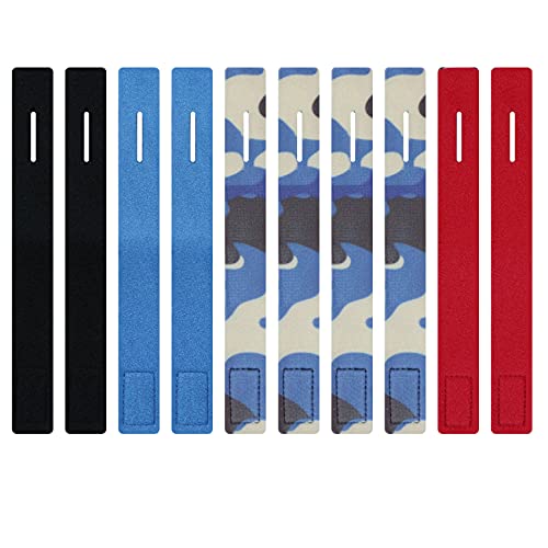 N-D Bande per canne da pesca, 10 pezzi, nastro in velcro, per canne da pesca, bacchette da badminton, mazze da golf (4 mimetizzazioni, 2 blu + 2 rossi + 2 neri)