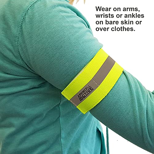 Bande Rifrangente - Riflettenti per Correre, Camminare, Andare in Bicicletta - Fasce Elastiche Ad Alta visibilità Regolabile. Bande di Sicurezza Giallo Neon per Braccio O Caviglia. Fino A 35cm.