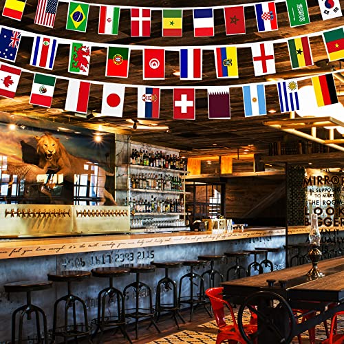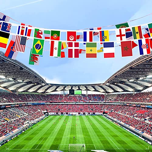Coppa del Mondo di Calcio 2022 Bandiera Bunting: Confezione da 2 bandierine che includono le bandiere di tutte le 32 squadre. Facile da decorare al bar, al ristorante, alla festa.