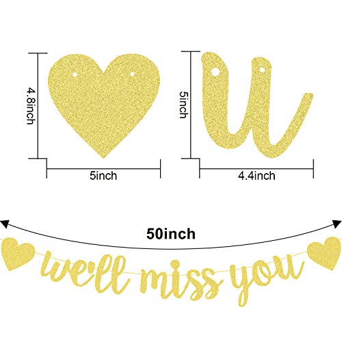 We'll Miss You Bandiera Decorazioni Glitter Oro Banner Bandiera di Addio per Laurea in Pensione Going Away Office Work Festa (Colore Oro)