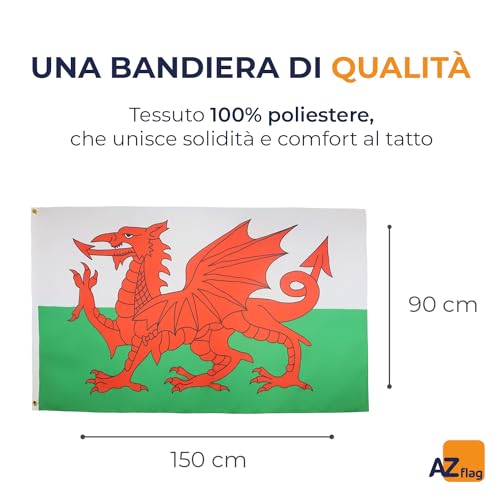 AZ FLAG Bandiera Galles 150x90cm - Gran Bandiera Gallese 90 x 150 cm Poliestere Leggero - Bandiere