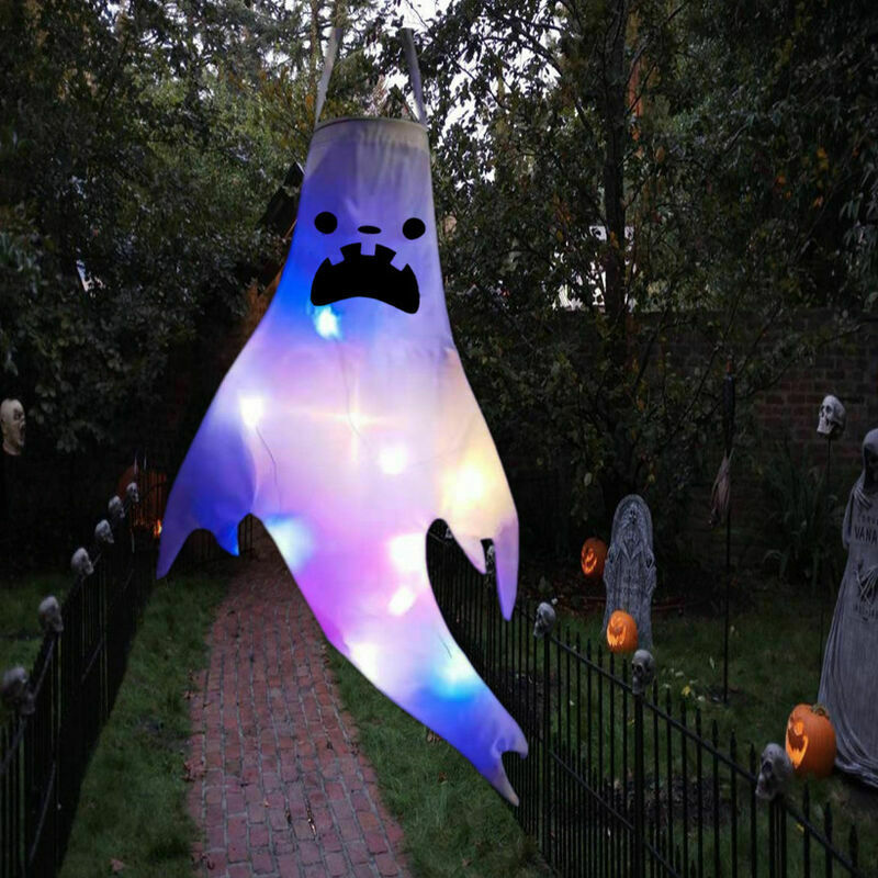 DescrizioneHalloween Glowing Ghost Windsock Flag with LED Light Hanging DecorPackage Include: 1 x Windsock Nota: 1. A causa del diverso effetto del monitor e della luce, il colore effettivo dell'articolo potrebbe essere leggermente diverso dal colore mostrato su le immagini. Grazie2. Si prega di consentire una deviazione della misurazione di 1-3 cm dovuta alla misurazione manuale.