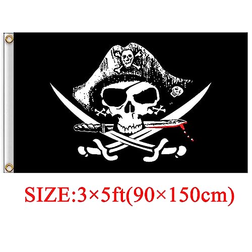 Bandiera dei pirati, 2 pezzi, 90x 150cm, Jolly Roger, teschio morto, petto e ossa incrociate, in poliestere, doppie cuciture, per feste pirate, Halloween, compleanno, decorazioni e regali 3'X5'