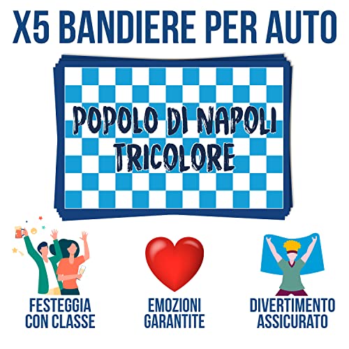 Compra per tutta la Famiglia! Set di 5 Bandiere Auto Popolo di Napoli 2023 Originale ️ - Festeggiamenti per questo 3° tricolore, sbandiera o esponi con orgoglio la bandiera popolo di Napoli Scacchi, libera l'aria di festa nella tua città!