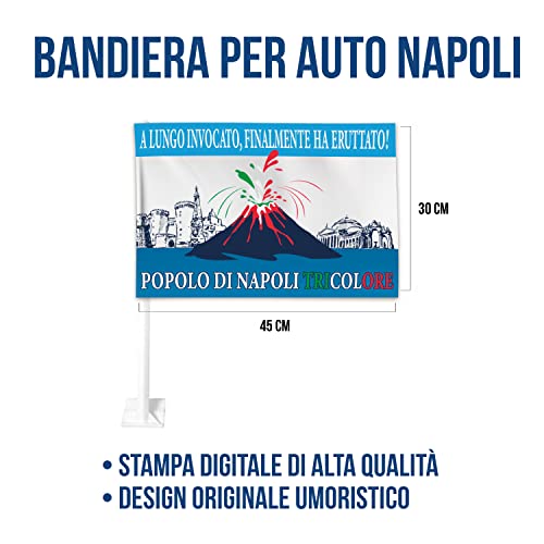 Bandiera Popolo di Napoli 2023 Originale - Bandiera Auto con Gancio Finestrino 30x45 cm Vesuvio Erutta - Gadget Idea Regalo Tifoso Calcio Originali - Idee Regali Divertenti per Tifosi