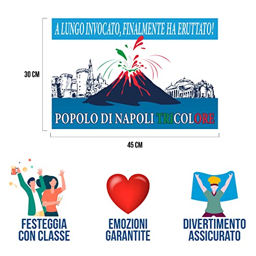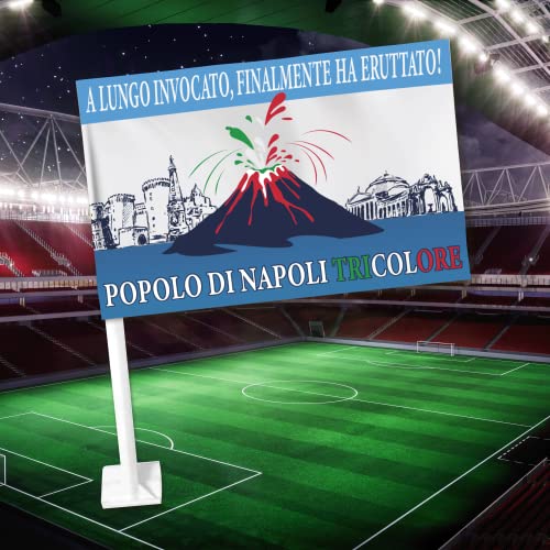 Set 3 di Bandiera del Popolo di Napoli per Auto - La bandiera del popolo per il popolo, città in festa, popolo di Napoli tricolore! Finalmente campione, festeggia con la bandiera Napoli Vesuvio erutta, un'idea regalo originale per tifosi d'eccezione!