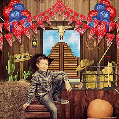 Bandiera di Sfondo di Occidentale, 40 Pezzi Banner di Cowboy Palloncini 5 Pacchi Banner di Gagliardetto Bandana per Tema da Cowboy Occidentale Decorazioni per Feste