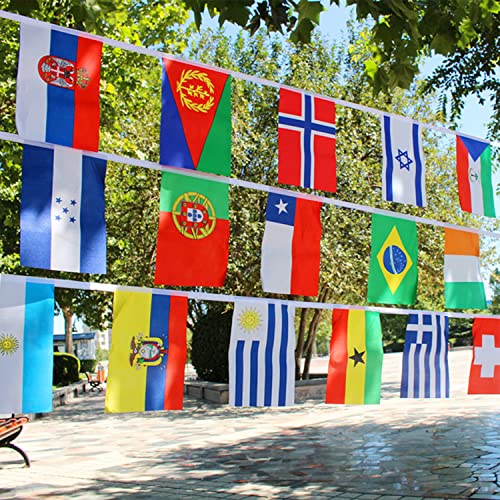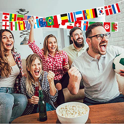 64 bandiere da calcio per la Coppa del Mondo 2022, bandiere per la Coppa del Mondo in 32 Paesi 10 m di bandierine internazionali per feste di calcio, bar, giardino, ristoranti decorazioni (14 x 21 cm)